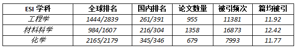 内蒙古科技大学“化学”进入ESI全球排名前1%