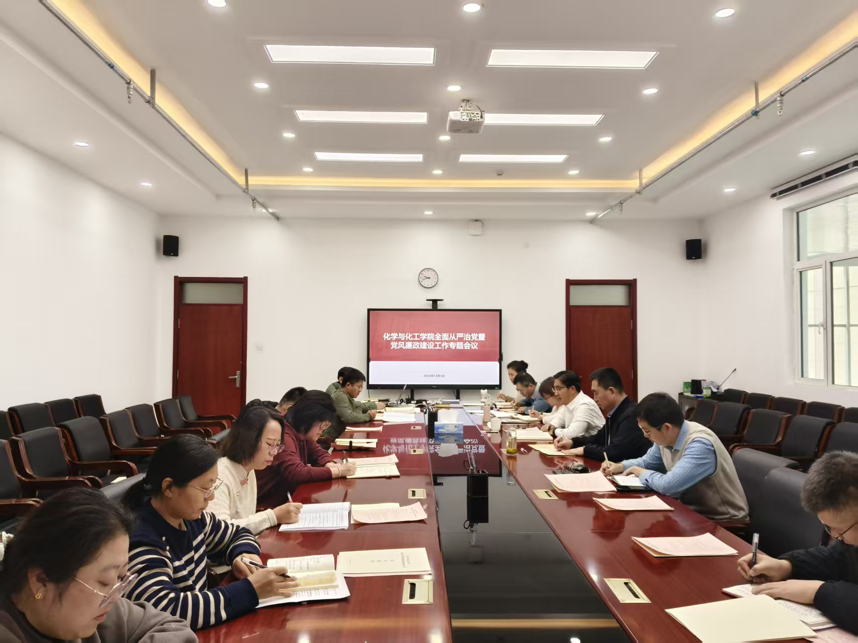 会议聚焦深化全面从严治党主题,通过三项议程推进工作落实:一是强化理论武装,集体学习蔡奇同志《持之以恒推进全面从严治党(学习贯彻党的二十届四中全会精神)》专题文章;二是总结工作进展,听取学院党委书记杨包生同志所作的学院党委党纪学习教育阶段性总结及全面从严治党工作报告;三是筑牢思想防线,组织观看警示教育片,并由系部主任、部门负责人代表围绕风险防控作表态发言。