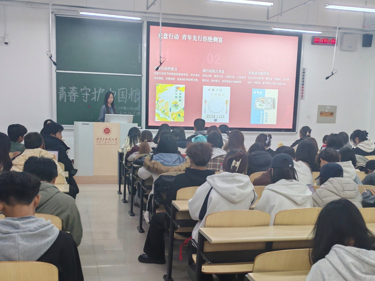 团委组织各班级团支部开展了以“青春守护中国粮”为主题的团日活动。活动通过团支书的讲解,帮助青年学子深刻理解粮食的来之不易。
